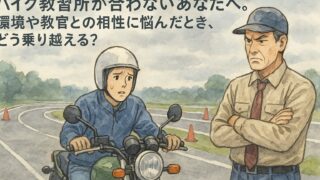 未分類 バイク教習所が合わないあなたへ。辞めずに進むための選択肢と心構えを徹底解説! バイク教習所が合わないと感じたときの対処法や選択肢を具体的に解説。辛い教習も前向きに乗り越えるヒントが見つかります。 未分類