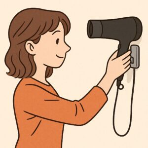 また、ドライヤーを毎日使うタイミングを想定し、洗面台やコンセントの位置との動線も意識しましょう。 コードの収納場所も一緒に考えると、見た目も美しく、家族全員がストレスなく使えるドライヤー収納が完成します。