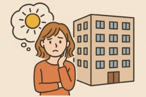 日当たりに関しては、時間帯を変えて再度内見するのも有効です。たとえ方角的に南向きでも、周囲の建物に遮られて日が当たらないことはよくあるため、自分の目で確認しましょう。