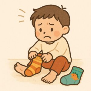 靴下を履くのを嫌がる子供も多いですが、その理由はさまざまです。たとえば「チクチクする」「きつい」「ムレる」「縫い目が気になる」など、実際に不快な感覚が原因になっていることがあります。